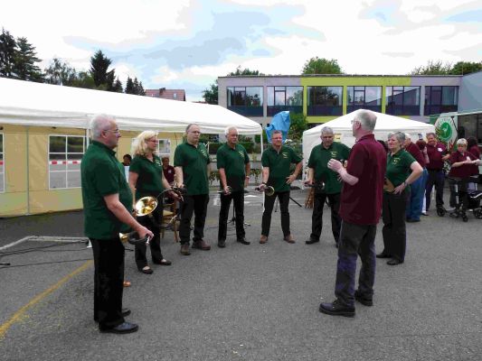 Am letzten Wochenende im Juni folgte dann die Zweit-Auflage des Weier-Wies-Festes, dieses Mal auf zwei Tage angelegt. Auftritte des Chors, daneben auch Darbietungen des Neuweiler Jagdhornbläserchors, Tanzdarbietungen der Line Dancer aus Neuweiler sowie der Zumba-Gruppe der DJK Neuweiler, am Abend Unterhaltungsmusik mit den Kapellen „Zeitlos“ und „Bachspatzen“ lockten viele Besucher auf das Festgelände. Da auch bestens für Speis und Trank gesorgt war, konnten unsere Gäste bei herrlichem Wetter zwei wunderschöne Tage auf dem Schulhof der Weier-Weis-Schule verbringen. Der Wunsch „nach mehr“, nach weiteren Festen dieser Art war für die Veranstalter – SVE und OGV – mehr als verdientes Lob. Die Bilder sprechen für sich: