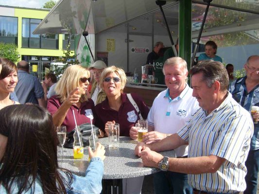 Auch wenn nicht immer und überall gesungen wird – die SVE ist mittlerweile gern gesehen. So auch bei der in diesem Jahr erstmals von der Stadt Sulzbach ausgerichteten Gudd-Gess-Tour auf den Spuren von Karl May. Mit einem eigenen Stand an einem lauschigen Plätzchen mitten im Wald (wie der Vorsitzende verriet, handelt es sich bei dieser Stelle – unter den weit ausladenden Ästen einer über 300 Jahre alten Eiche – um einen seiner Lieblingsplätze im Sulzbacher Forst) gelang es den Damen und Herren vom Chor, die Wanderer mit einem kleinen Imbiss zu verwöhnen: Reklame für eine gute Sache, nämlich für den Chor. Dass diese Aktionen positiv ankommen, beweist die Beliebtheit der Sängervereinigung: Die Zahl der Aktiven, also der Sängerinnen und Sänger ist mittlerweile von anfangs 24 auf 30 Personen angestiegen.