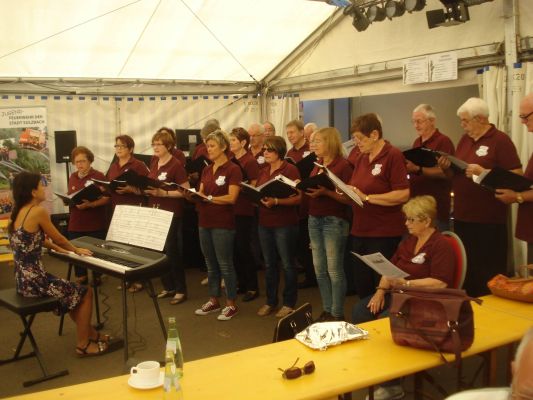 Mitte August stand dann eine besondere Herausforderung an: Die Stadt Sulzbach veranstaltete zum ersten Mal ein Chorfest und lud dazu alle Chöre im Stadtgebiet ein, mitzumachen. Hier musste mit einem besonders kritischen Publikum gerechnet werden, waren doch alle Teilnehmer „vom Fach“ und bemüht, sich selbst bestens darzustellen. Quintessenz: Es war eine gelungene Veranstaltung, alle Teilnehmer waren zufrieden – mit sich, den anderen und der ganzen Welt.