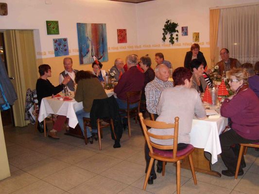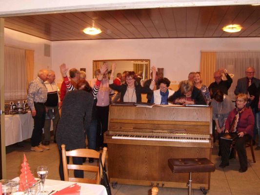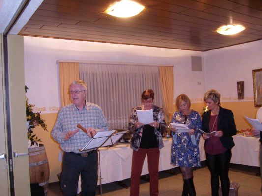 Bevor es dann zum Essen ging, stellte der Vorstand mit einem kleinen Lieder-Potpourri – allesamt weihnachtliche Melodien – die abgelaufenen drei Jahre des gemischten Chors vor.