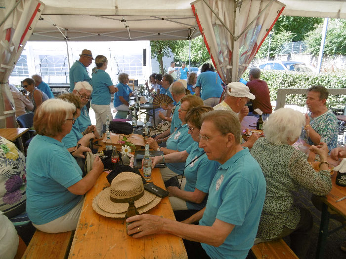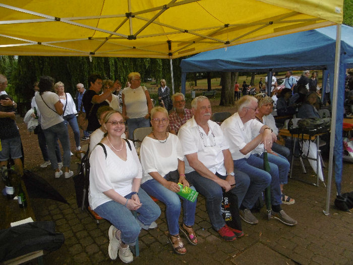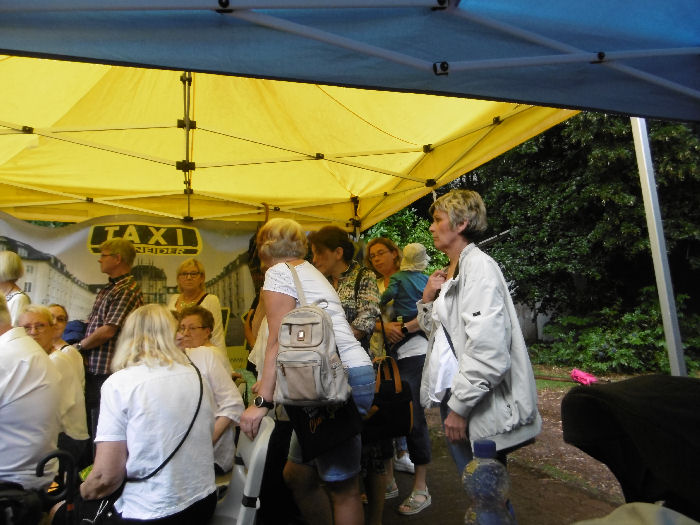 Und der Regen, der Regen, der fällt …. wo hab´ ich diese vermutlich Liedzeile eigentlich her? – fällt mir nicht ein. Aber passt ganz gut zu unserem Auftritt im Dudweiler Stadtpark. Nach „stundenlangem“ Ausharren in mehr oder weniger strömendem Regen läuft beim Veranstalter auch der Zeitplan aus dem Ruder: Wir entscheiden: Auftritt fällt ins Wasser! Damit sind wenigstens die nachfolgenden Chöre wieder etwas mehr in ihrem Zeitplan.