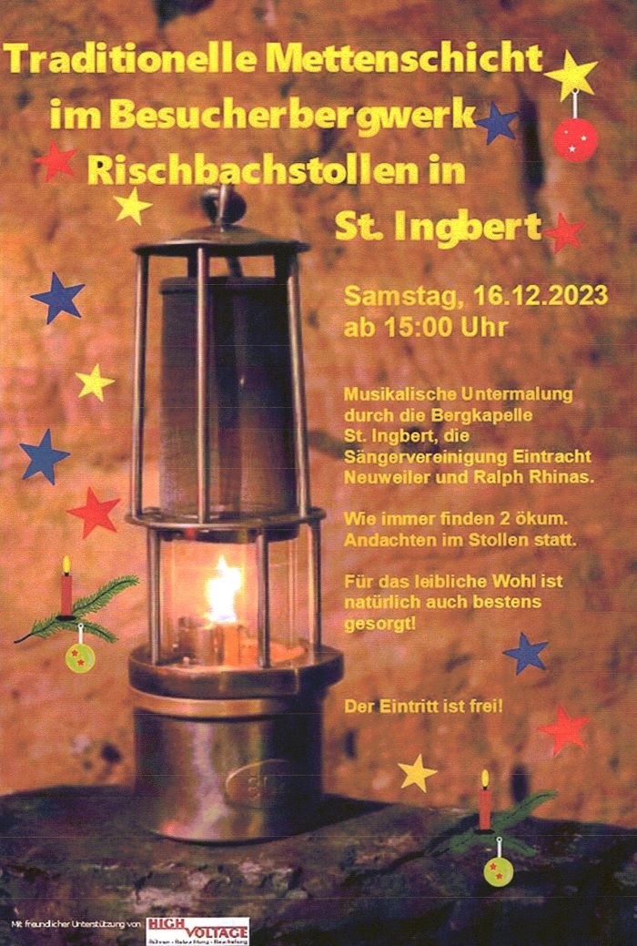 - Dezember: Traditionelle Mettenschicht im Rischbachstollen