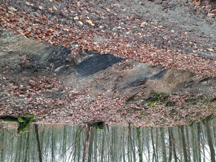 Anstehendes Kohlenflöz (dieses Foto wurde im Heinitzer Wald gemacht).
