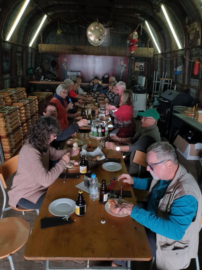 Selbstverständlich endete auch diese Wanderung mit einen zünftigen Bergmannsfrühstück in der Sumpfstrecke des Rischbachstollens. Gemeinsames Singen verbindet – oder wie es Peter Wittling, der Vorsitzende der Dingmatter (St. Ingberter) Grubenfreunde nannte: „Das ist vermutlich der Beginn einer längeren Freundschaft.“