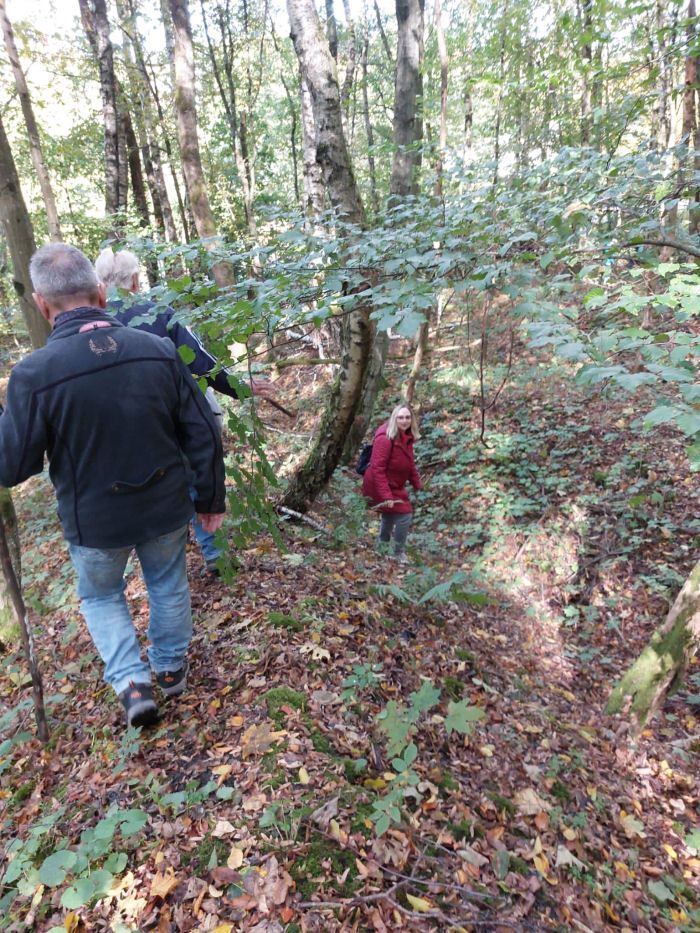 Durch den Wald unterhalb der ehem. Bergehalde der Oberen Anlage geht es bergauf zum früheren Hubertus-Schacht.