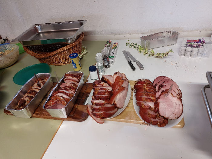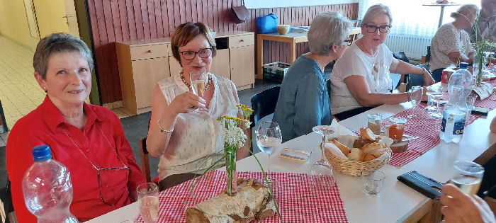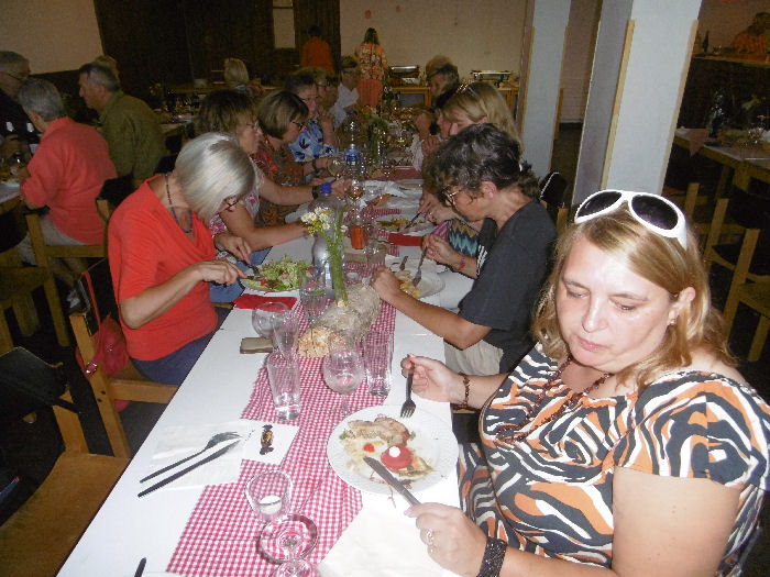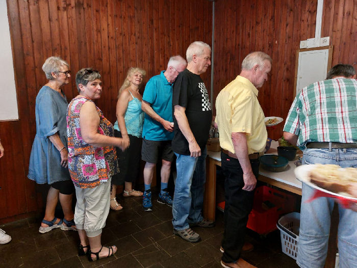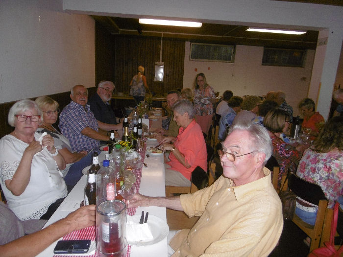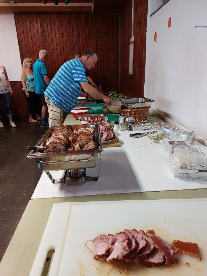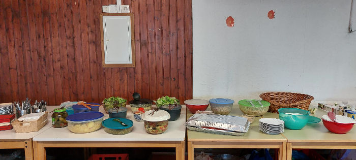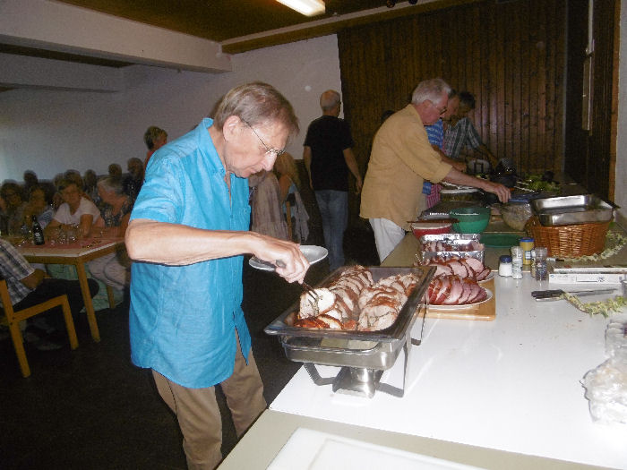 Dazu ein reichhaltiges Salatbuffet, von den Gästen (insbesondere den „Gästinnen“) selbst hergestellt und spendiert.