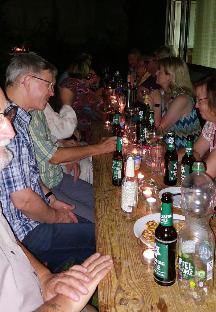 Doch der „tätliche“ Einsatz ist wohl auch eines kleinen Dankeschöns Wert: Alle freiwilligen Helfer, egal, ob sie mit 25-30 oder nur 5 Stunden beteiligt waren, dazu die Unterstützer („Sponsoren“ sagt man dazu) werden nach den Großen Ferien nochmals eingeladen, um nunmehr für ein paar Stunden gemeinsam das zu genießen, was ihnen durch ihren Einsatz beim WWF verwehrt war: Fröhlich zusammenzusitzen und bei einem kleinen Imbiss mit ein paar Getränken nette Gespräche zu führen – die sich im Übrigen schon vielfach mit dem WWF im Folgejahr befassen.