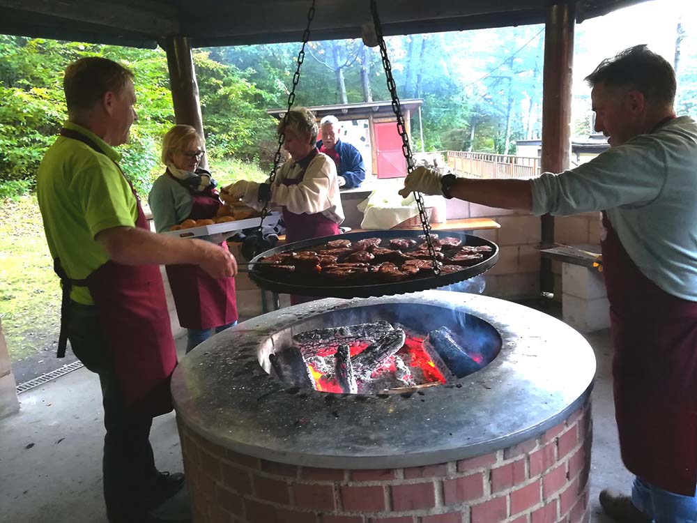 Bevor sie sich die fachmännisch zubereiteten Schwenker munden lassen konnten, begaben sich 18 Mitglieder der Sängervereinigung „Eintracht“ Neuweiler auf eine kleine Wanderung, ausgehend vom Siedlereck über den Brennenden Berg bis zum Zielpunkt Fischerhütte des ASV Sulzbach, wo sie auf weitere 35 ihrer Freunde trafen
