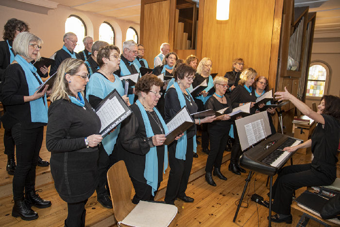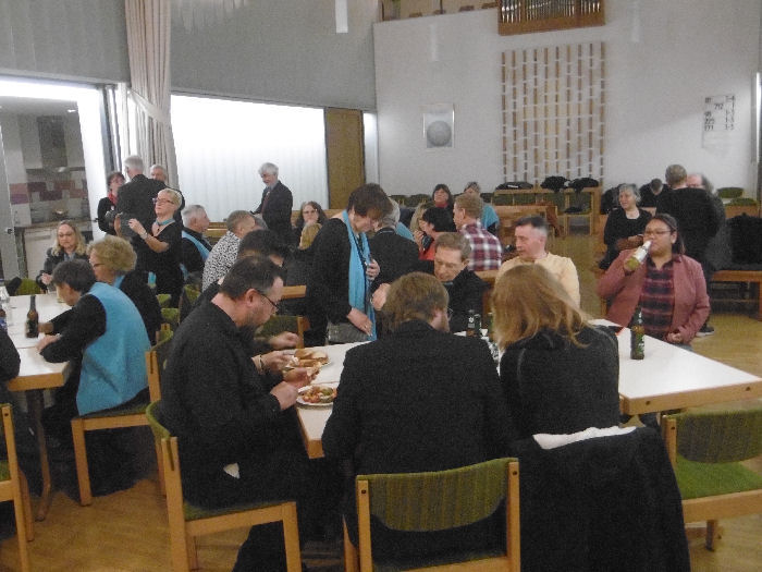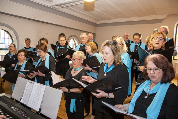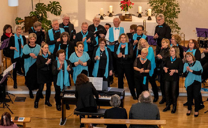 Um das Programm nicht ständig durch den umständlichen und zeitzehrenden Wechsel zwischen den Auftritten der beiden Akteure – Posaunenchor und Gesangverein – zu stören, entschloss sich der Chor, seine Vorträge von der Orgel-Empore aus darzubieten, lediglich zum letzten Lied wechselten wir ebenfalls in den Altarraum. Dies war mal eine ganz neue Erfahrung.
